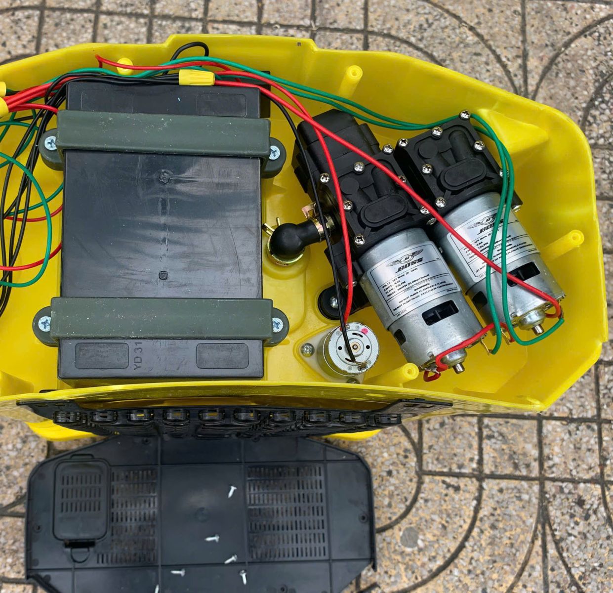 Hệ thống điện của bình nằm dưới phần đế, hạn chế tiếp xúc với nước và các dung dịch hoá chất